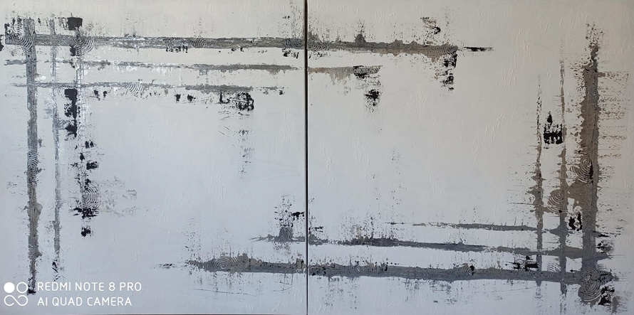 Bianco/oro/argento...lavori in acrilico, tecnica mista