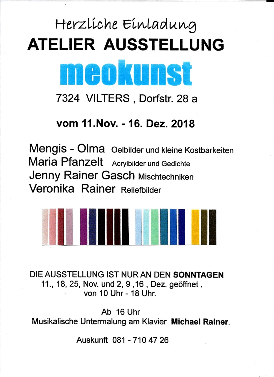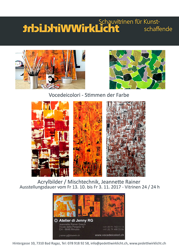 Per Visite senza impegno, ogni visita per me e preziosa / für Besuche der Atelier-Ausstellung telefonieren sie bitte auf 079 488 25 86. Danke, ich freue mich auf Ihren Besuch.