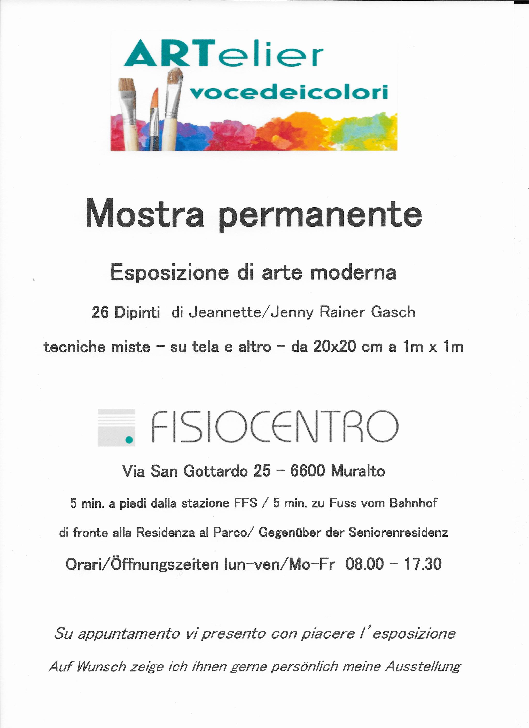 L'esposizione permanente al FISIOCENTRO di Muralto continua...orari 8.00 - 17.30 da lunedi a venerdi.